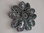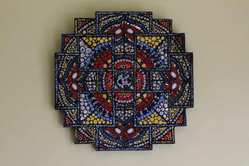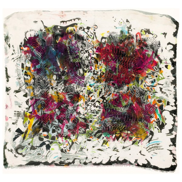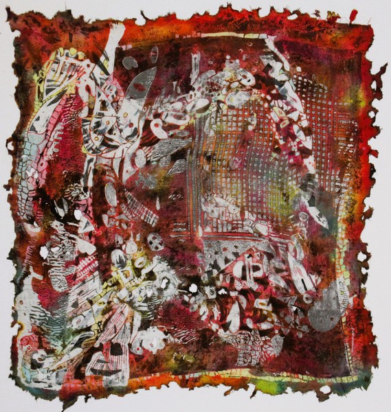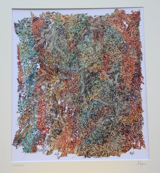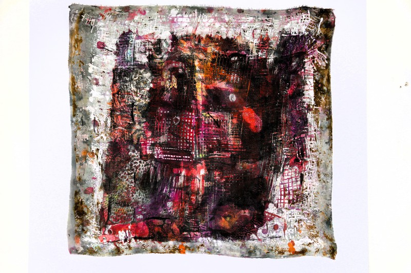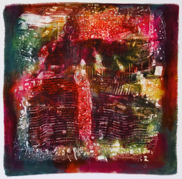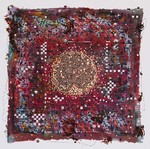 II like to work by freely experimenting with the medium, working mostly with resist and discharge-dyed textile variations, print and mosaic.